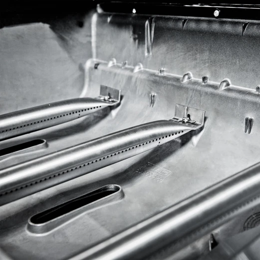 Die leistungsstarken Dual Tube Edelstahlbrenner mit jeweils 3 kW sind in einer hochwertigen Therma Cast Aluminiumguss Brennerwanne verbaut. Das Zusammenspiel der Dual Tube Brenner in Verbindung mit der geschlossenen Alugusswanne bietet besonders hohe Temperaturen und eine ideale Hitzeverteilung.