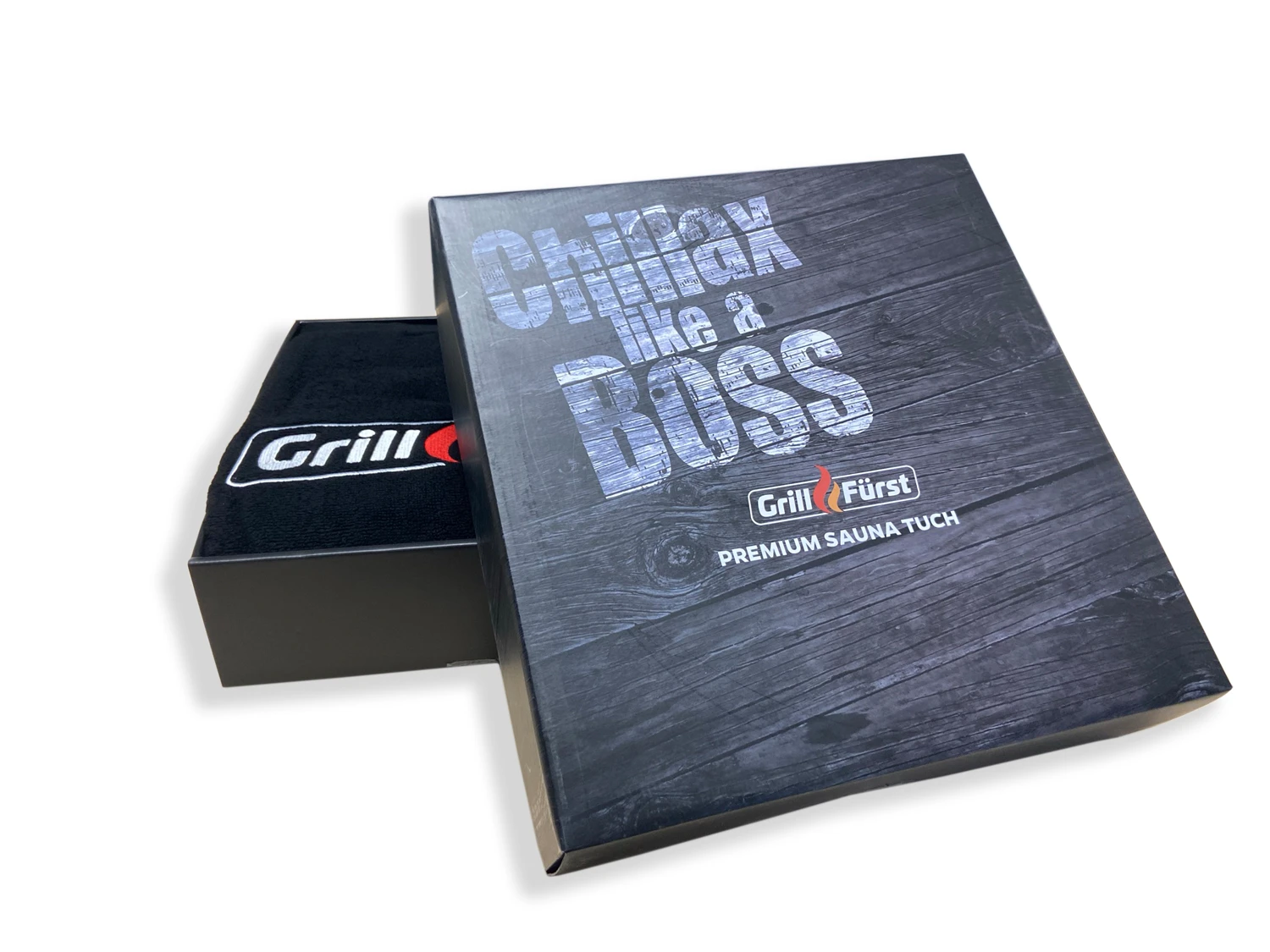 1 x Grillfürst Handtuch / Saunatuch in Geschenkschachtel