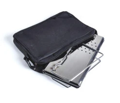 Der praktische Anzündkamin ist in weniger als 10 Sekunden aufgestellt und wird mit einer strapazierfähigen Tasche mit Trageriemen geliefert.