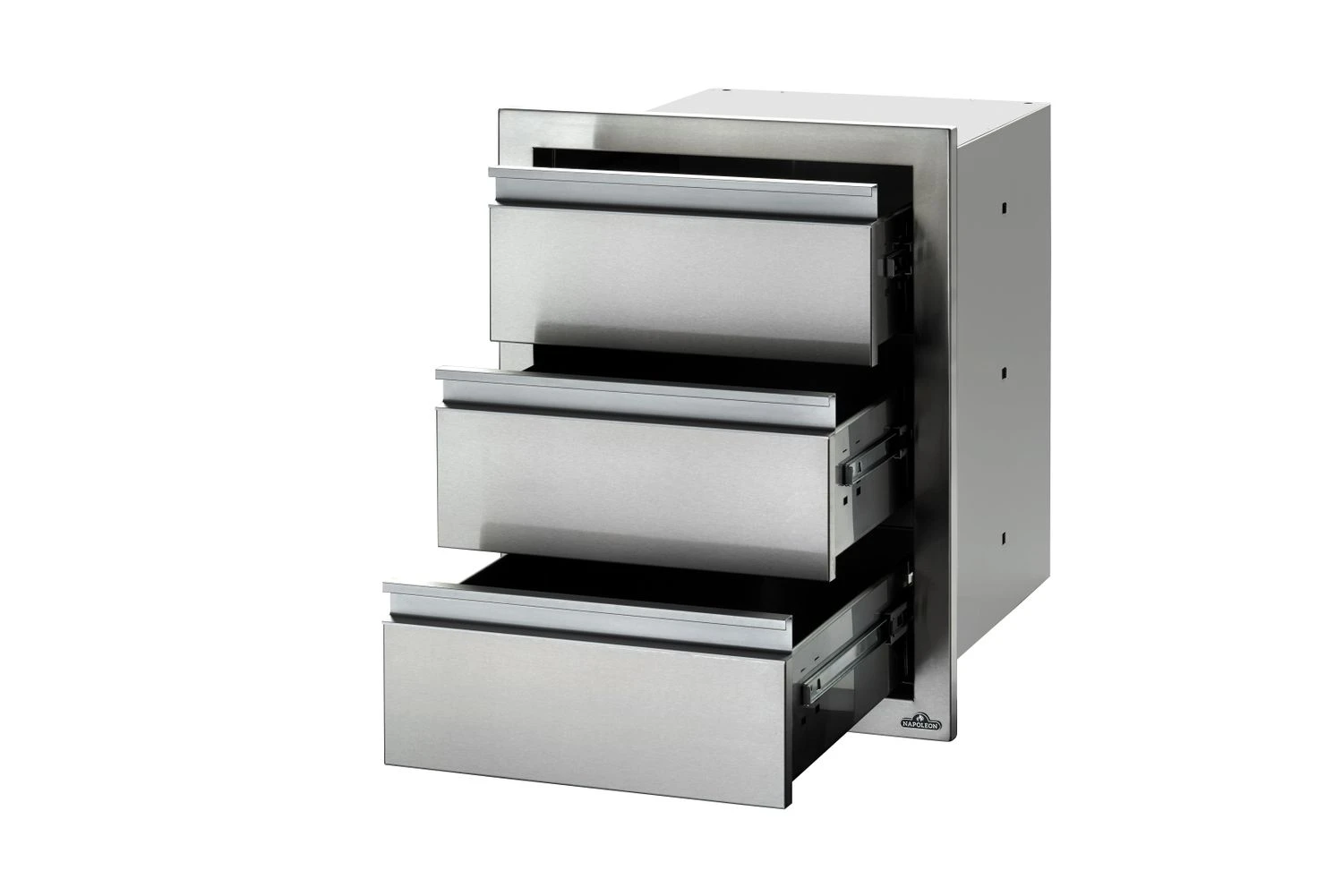Der Napoleon Einbauschrank mit 3er Schubladen bietet genügend Stauraum für sämtliches Grillzubehör und alles was in der Grillküche in unmittelbarer Nähe aufbewahrt werden soll.