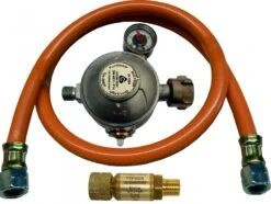 Die von uns zusammengestellte Napoleon Oasis Outdoor Küche wird mit einem Profi Anschlussset ausgeliefert. Der Gasanschluss besteht aus einem Sicherheitsdruckregler, einer Schlauchbruchsicherung sowie einem Gasschlauch.