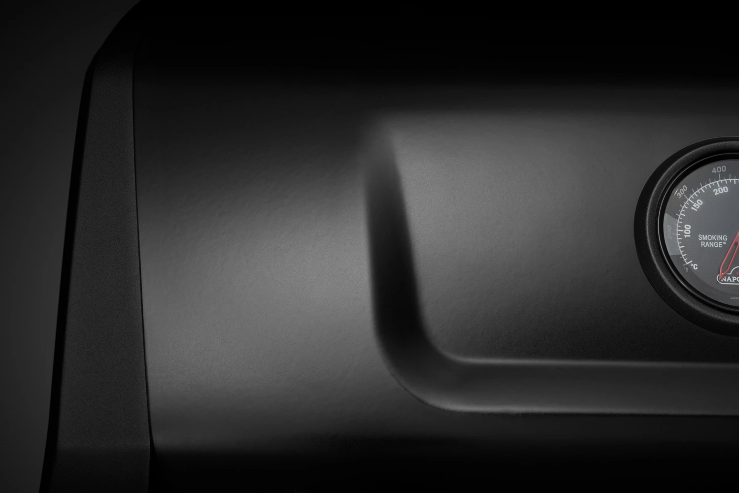 Die besonders hochwertige mattschwarze Emaillierung der Phantom Gasgrills ist definitiv ein echtes Highlight. Alle von außen sichtbaren Bauteile des Grills sind mit dem elegantem Finish versehen, so dass eine einheitliche Optik entsteht. Dabei erinnert die Farbe an eine edle „Gun-Metal“-Emaillierung, die auch bei Autos eingesetzt wird. Zusätzlich zur Emaillierung hat auch das Deckelthermometer ein schickes Design erhalten: Ein mattschwarzer Rahmen mit Ziffernblatt im Carbon-Look runden den Look .