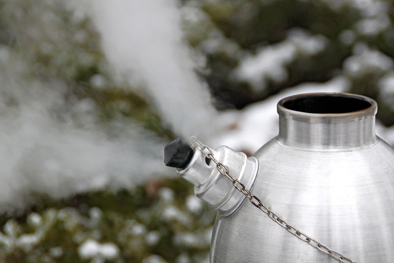 EntzĂĽnden Sie in der Feuerschale der Kanne ein Feuer. Dank des Kamineffektes im inneren der Kanne entsteht schon nach kurzer Zeit eine groĂźe Hitze, mit der das Wasser in der Kammer rund um den Kamin erhitzt wird. Sobald das Wasser den Siedepunkt erreicht hat, gibt die Dampf-Pfeife ein Signal.