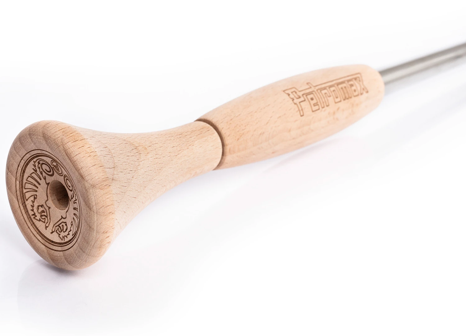 Das klassische Bouffadou besteht aus robustem Edelstahl mit Griff und Mundstück aus naturbelassenem Buchenholz. So liegt es leicht und gleichzeitig sicher in der Hand.